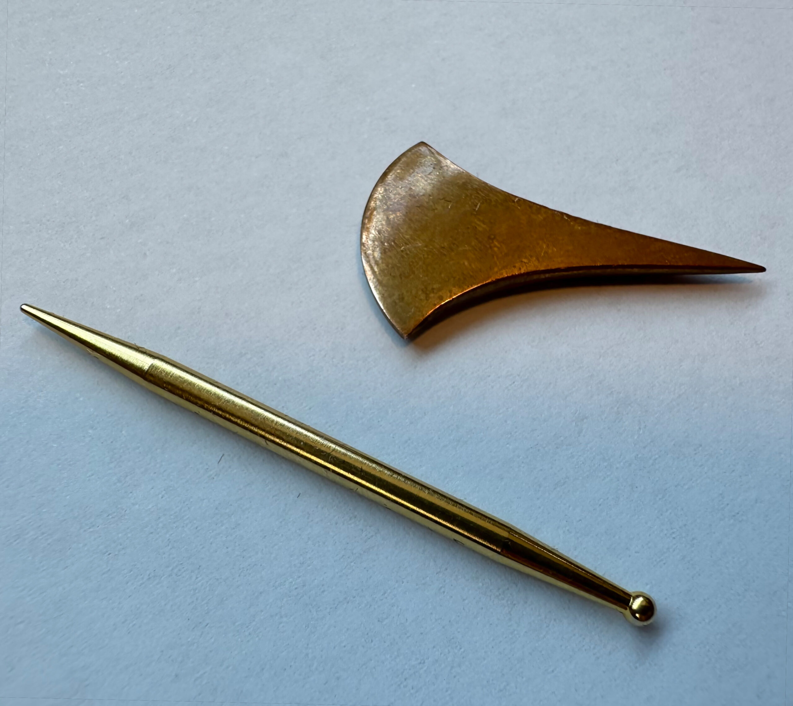 【接触鍼】ヘラ状や細い棒状になっている[てい鍼]と呼ばれる道具を使い、経絡やツボにそってやさしく包み込むように身体にあてて行う方法です。 肌に直接刺すものではありません。